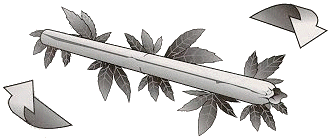 | Roll de joint met de plakrand aan de buitenkant en roll hem dicht, lik de plakrand nu door het vloeitje heen. Als het goed is blijft je vloei zitten en heb je een redelijk strakke joint. Je ziet dat je een stukje papier over hebt, je kunt dit op 2 manieren weghalen. |