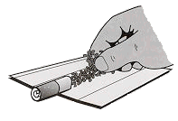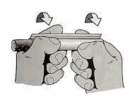 | draai een tipje en vervang de filter met je tipje. Zorg dat je tip niet te klein is, rol je tipje op en laat hem uitrollen in de huls. | ![]() |